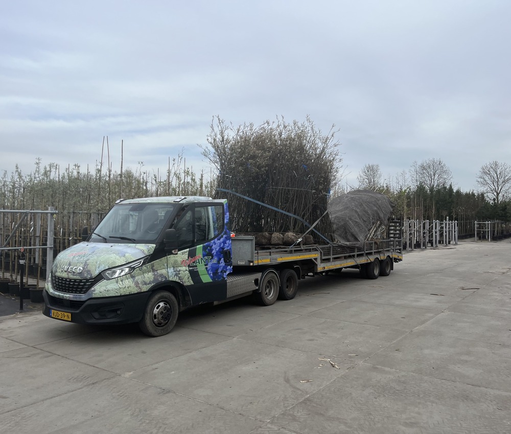 Heb je veel tuinmaterialen nodig? Of heb je geen tijd om heen en weer te rijden naar ons terrein? Geen probleem. Wij begrijpen dat je je tijd goed moet indelen. Daarom kiezen steeds meer klanten voor ons eigen transport.